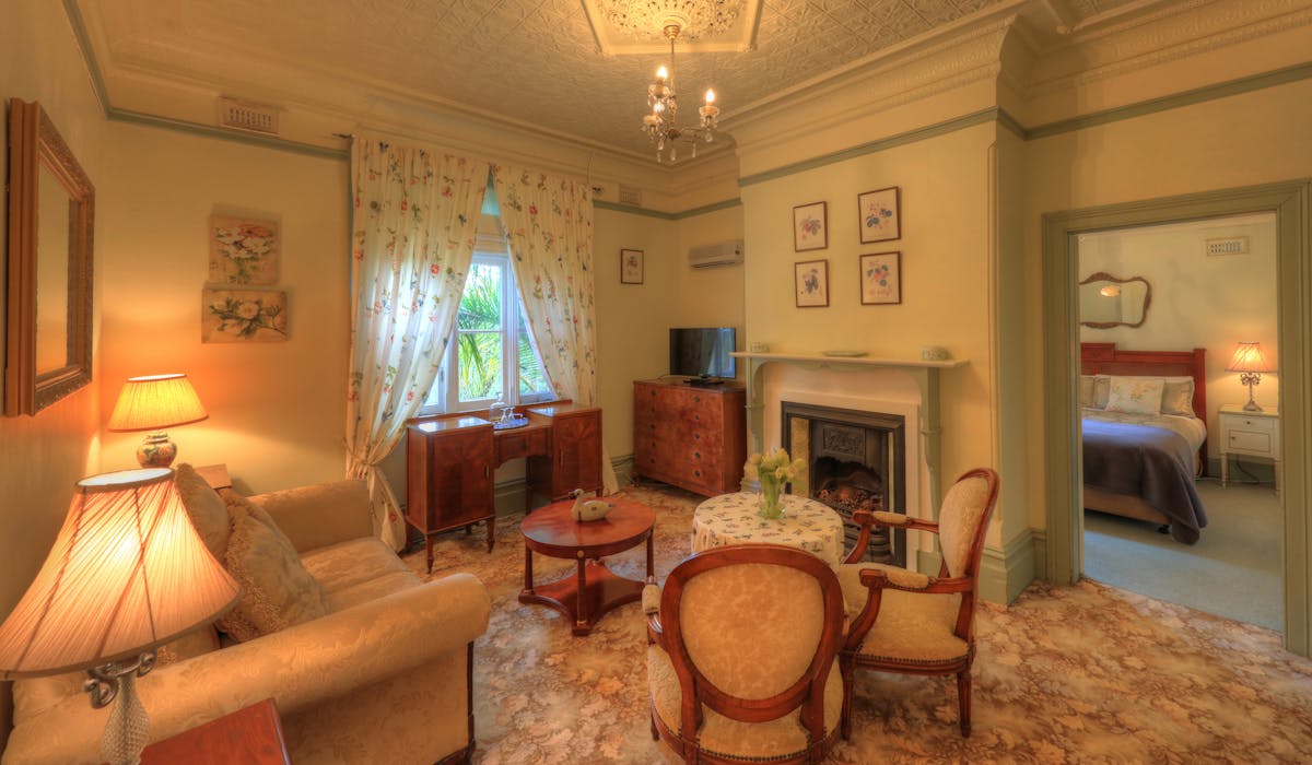 During your stay, we encourage you to explore our five acres of formal gardens, which date back to the 1870s. Marvel at the exotic trees, visit the ironstone cemetery, and view the traditional outbuildings. With 54 acres of property, you can be assured of country-perfect peace and quiet.